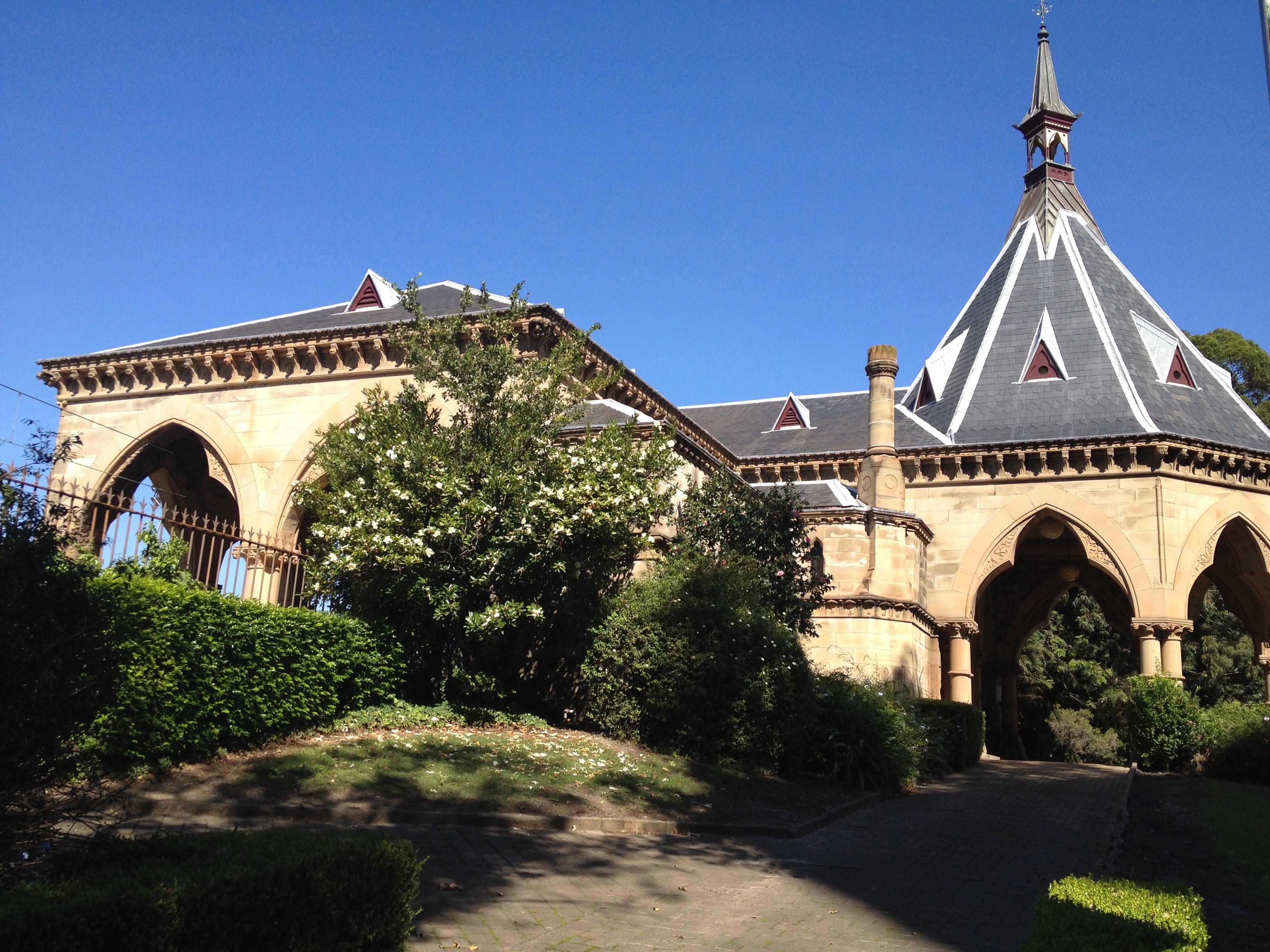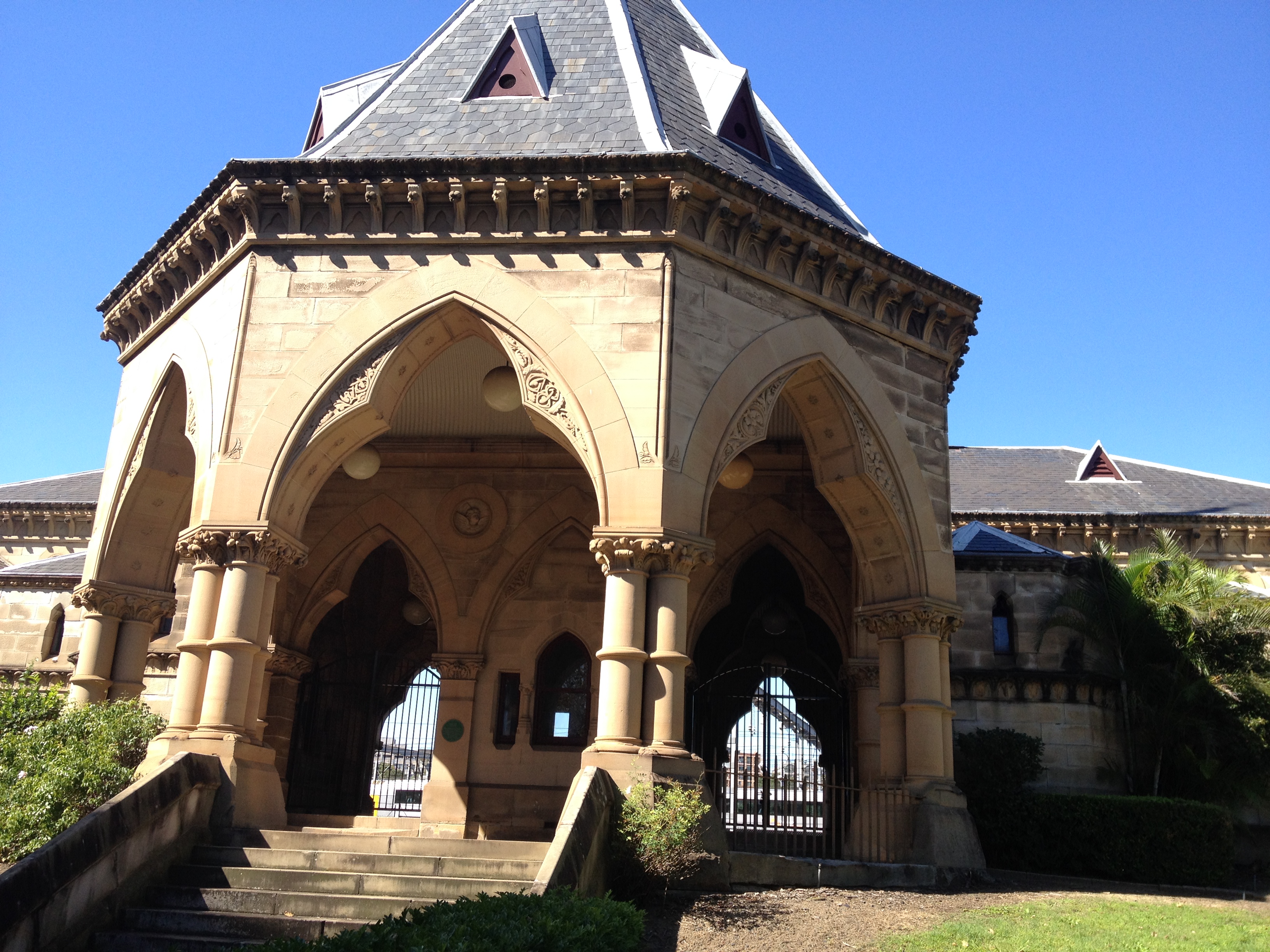 Given that my last post (here) talked about a train station that used to be at Sydney’s Rookwood Cemetery (and is now a church in Canberra), it makes sense that there was also a mortuary receiving station in the centre of Sydney from which mourners would depart with the coffin on their journey to the cemetery.