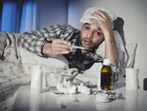 - Sick man lying in bed suffering cold and winter flu virus having medicine and tablets ID 49038199 © Ocusfocus | Dreamstime.com